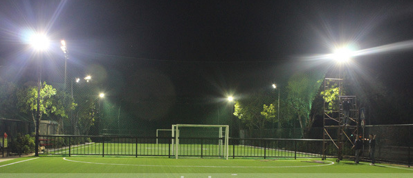 球場高桿燈對燈具的照明要求也是很高的,我們知道正規足球場的面積為105米x68米,也就是說光源的照射能力必須要達到50米遠的范圍,這種照射強度是普通400w